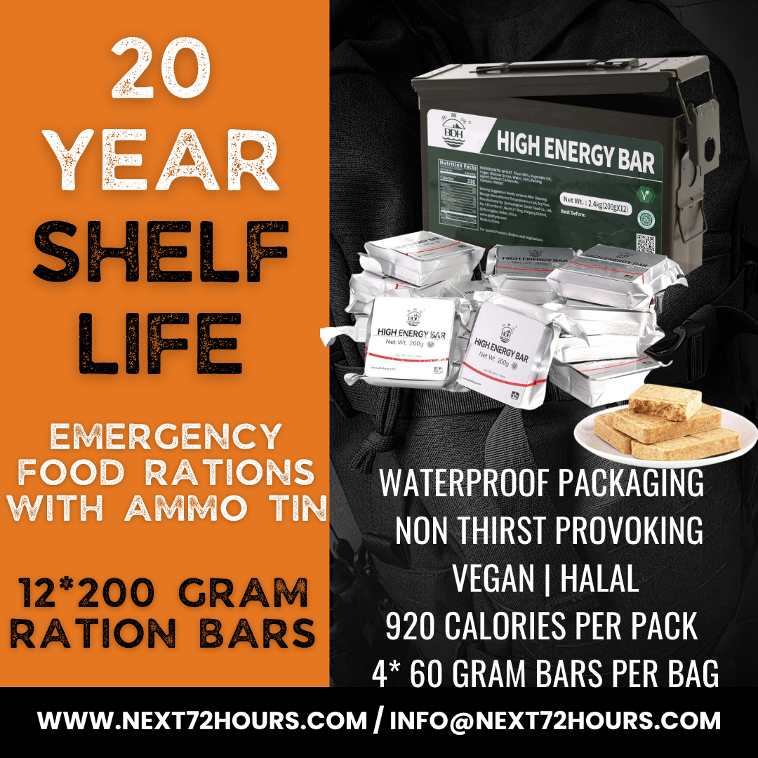 Stay prepared for the unexpected! Our emergency food rations are long-lasting, nutritious, and ready when you need them most. Check out our new Waterproof Ammo Tin Kits - Super Strong and Easy to carry these tins offer Peace Of Mind in every pack—grab yours today!