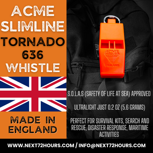 S.O.L.A.S Emergency Whistles are designed to work in all conditions and the ACME Slimline Tornado 636 Emergency Whistle is one of the best survival whistles on the market.